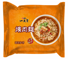 以醬油為基底,加入蔥、大蒜醬熬煮豬肉湯頭,醬油鹹香與豬肉甘甜完美融合,每一口都是經典「爌肉」麵。